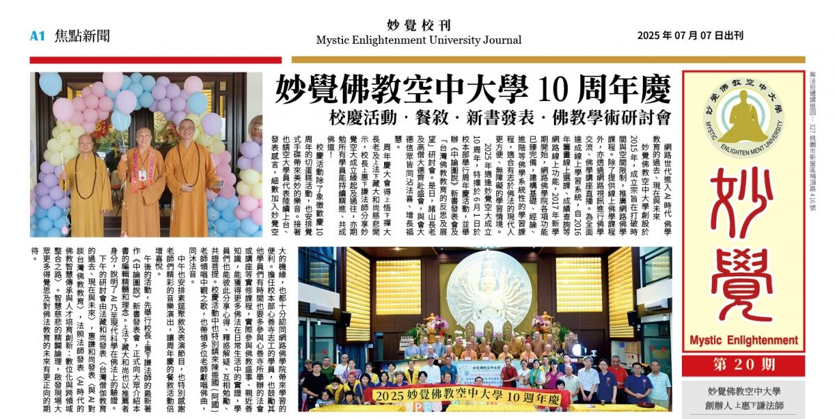 妙覺空大校刊第20期已發行,學員及善信大德已可在官網下載專區閱讀或下載。
