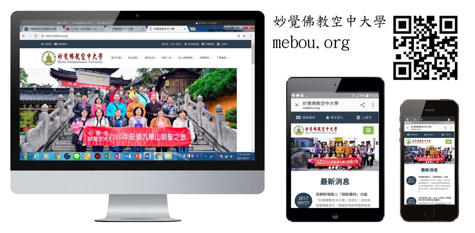 妙覺佛教空中大學自2017年8月新官網上線,陸續提供線上選課、成績查詢及線上捐款等功能。即日起(2017/10)手機版響應式網頁(Responsive Web Design,簡稱RWD)也已調整完成,從現在起,使用智慧型手機瀏覽網頁將更方便,也改善了電腦版網頁字體、選單太小等問題。