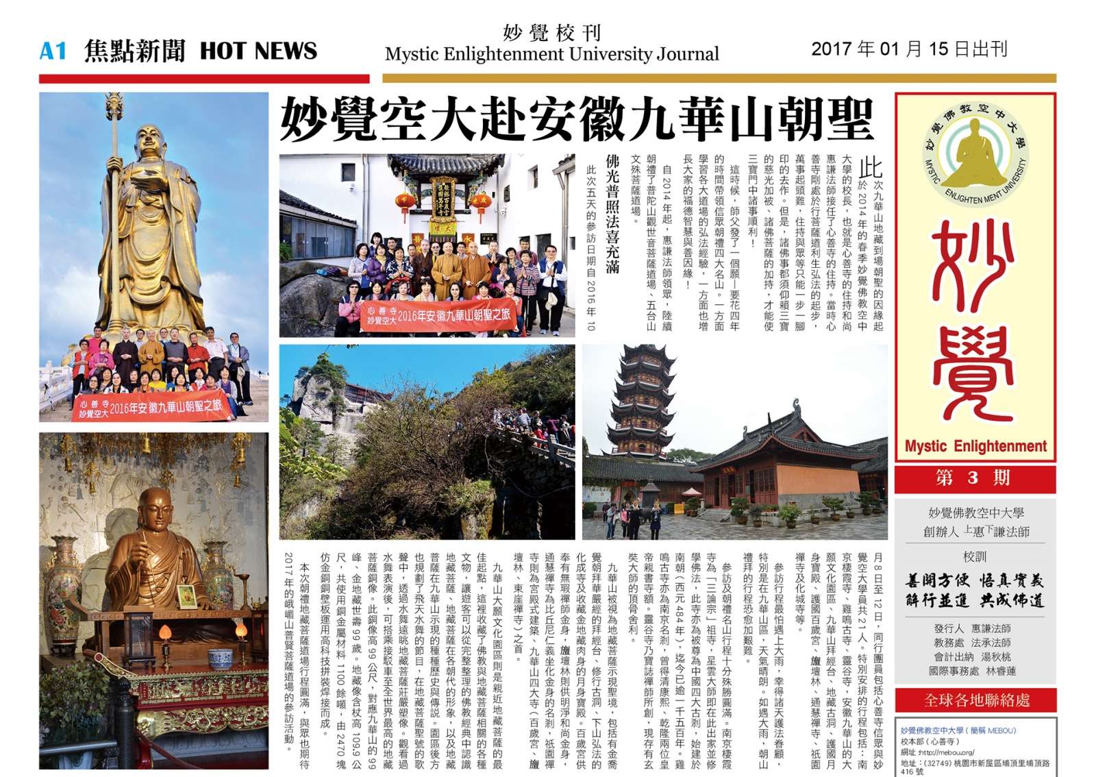 - 主旨:妙覺佛教空中大學校刊為半年刊,以學校活動、學習心得、參訪見聞等為主要內容,目的在推廣佛法教育、增進學員間的交流。