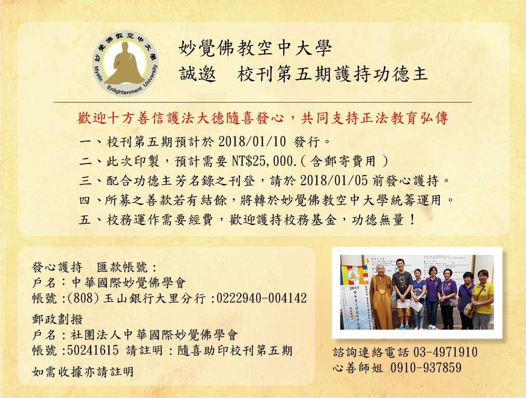 五、校務運作需要經費,歡迎護持校務基金,功德無量!