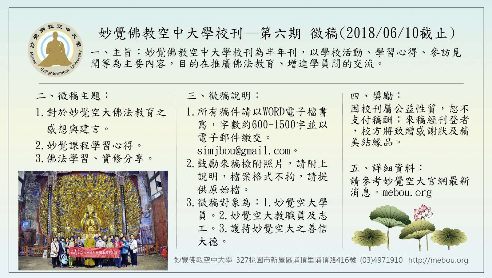 妙覺佛教空中大學校刊─第六期 徵稿!