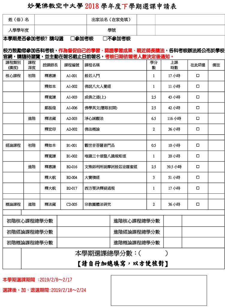 2018學年度下學期課程已於官網建置完成,請各位學員於2019/2/8-2/17上網選課。