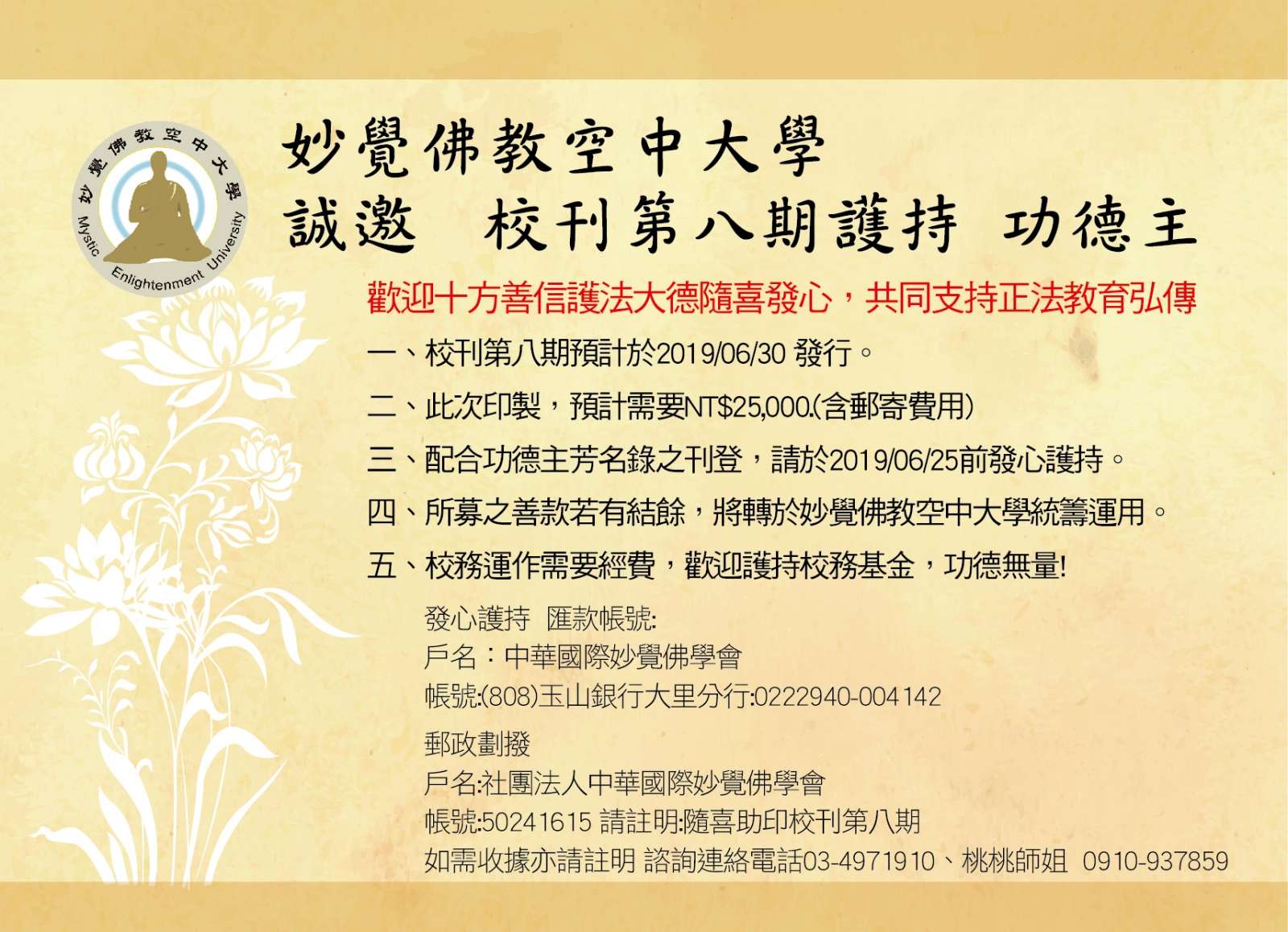 四、所募之善款若有結餘,將轉於妙覺佛教空中大學統籌運用。