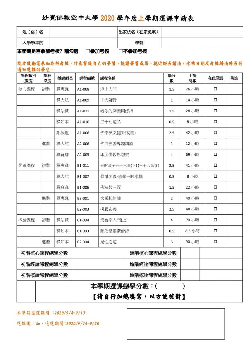 2020學年度上學期課程已於官網建置完成,請各位學員於2020/9/4-9/13期間上網選課。