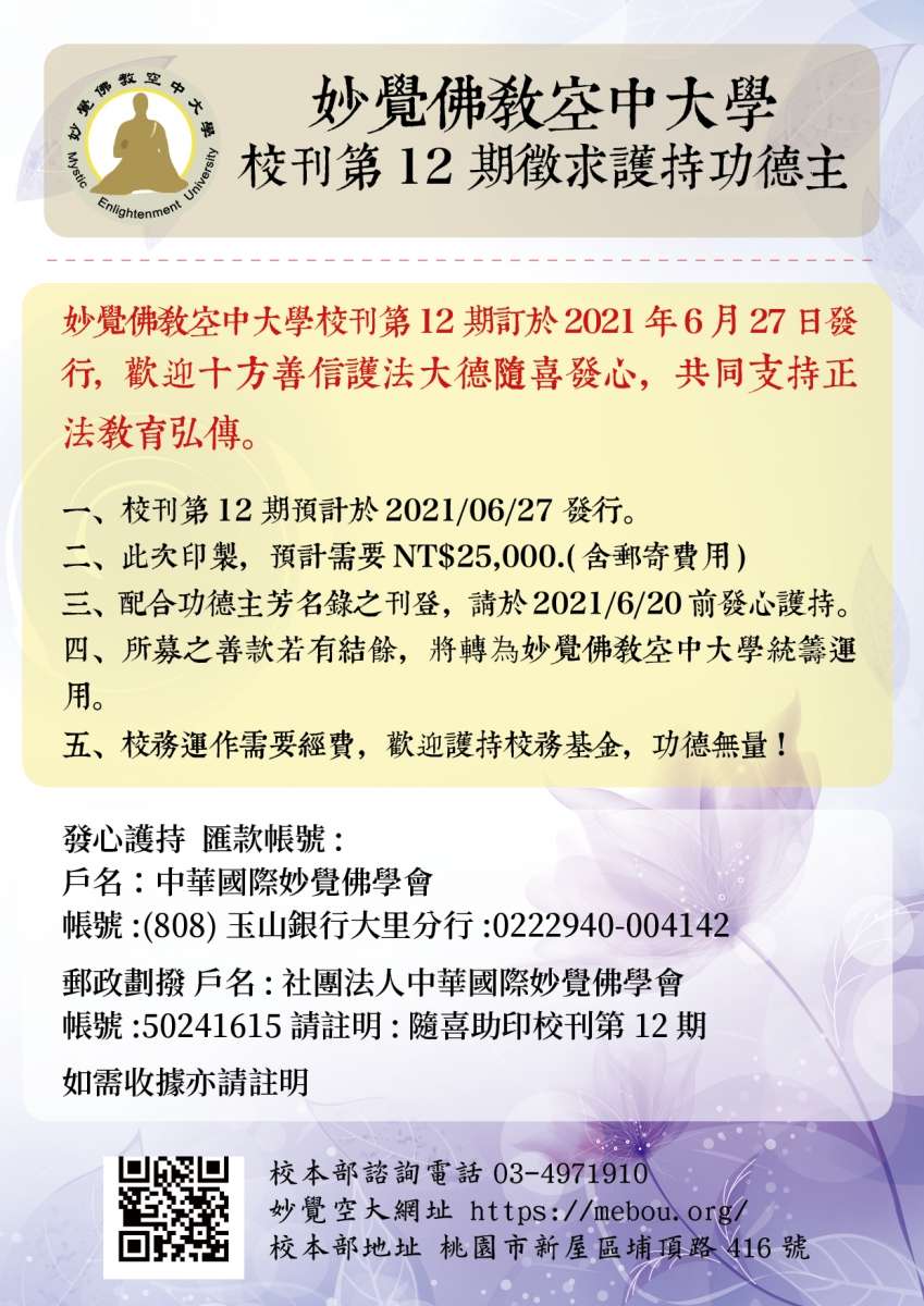 / 猶如貧女施燈難行能行 無畏艱難護持正法弘傳 護持第12期校刊