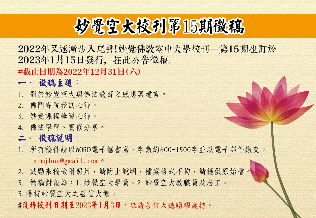妙覺佛教空中大學校刊─第14期開始徵稿!